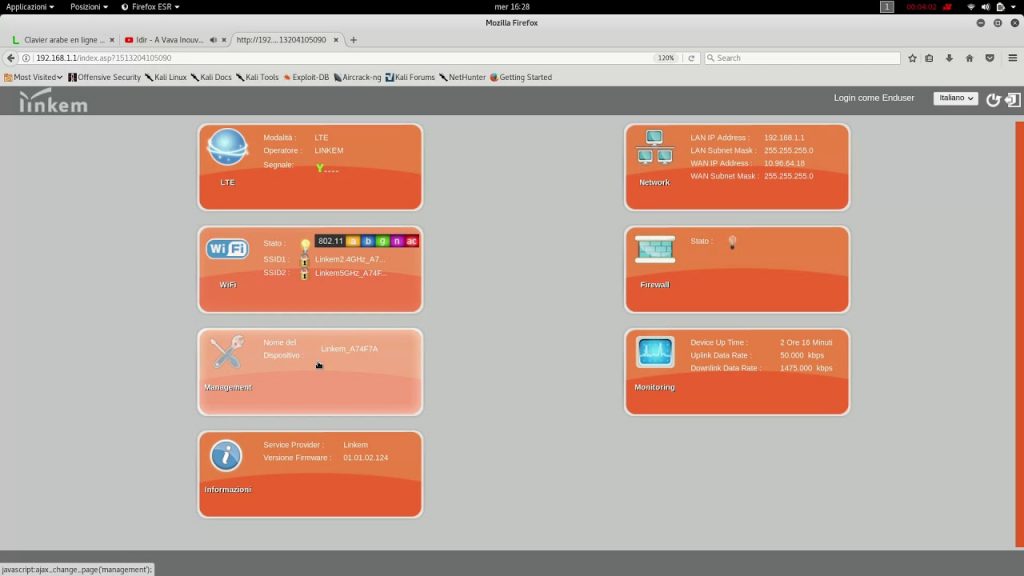 Accedi al pannello di gestione del router, collegandoti con l’indirizzo IP e immettendo il nome utente e la password: se è la prima volta guest come Username e linkem123 come password.