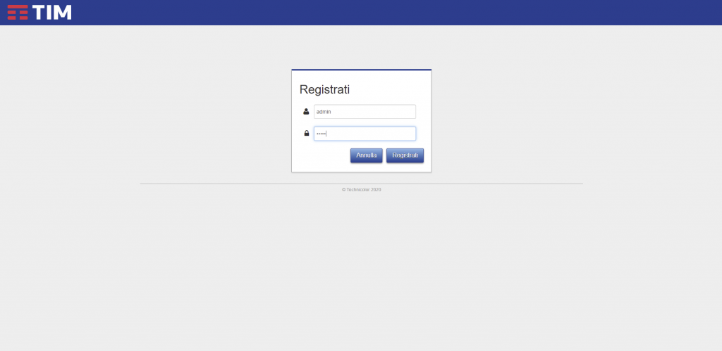 Dopo esserti collegato all’indirizzo IP del modem, inserisci il nome utente admin e la password che si trova sull’etichetta posteriore del modem.